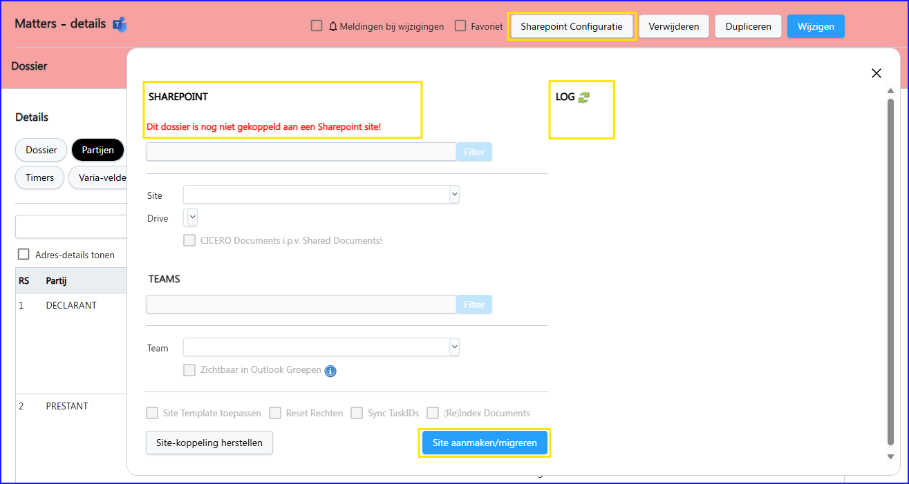 ‘Dit dossier is nog niet gekoppeld aan een SharePoint site!’